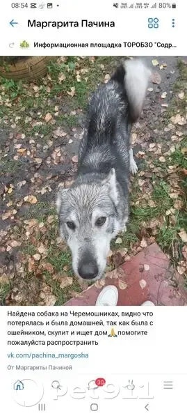 Окрас серо-белый,была в ошейнике,сейчас нету,...