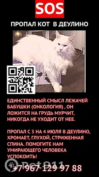 Пропал белый мэйкун; хромает, крупный, глухой...