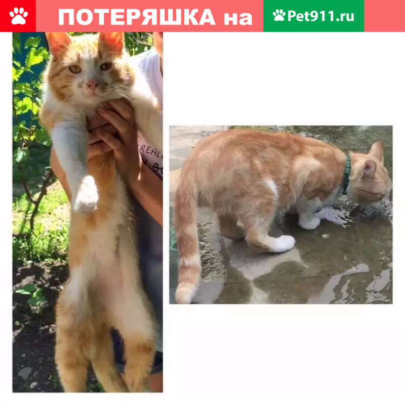 Пропал кот рыжий с белой грудкой и носочками....