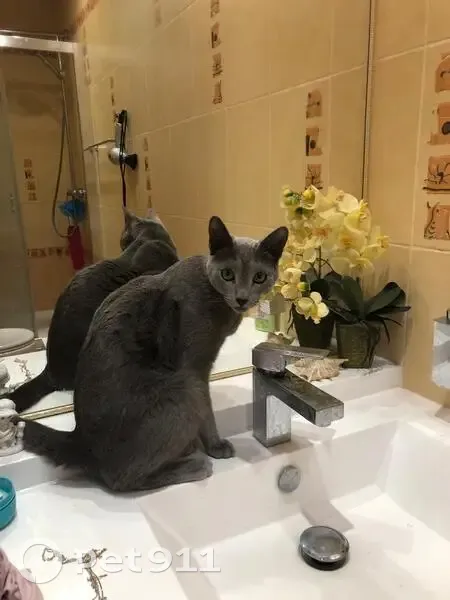 Окрас серо- голубой без пятен. Глаза зеленые...