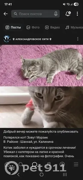 Пропал кот между Александровским и Минералово...