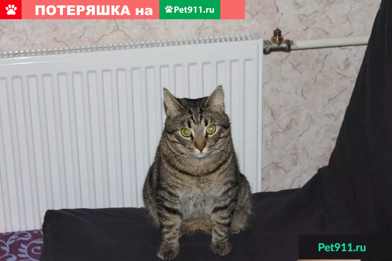 Пропал домашний котик, серый в полоску, лапки...