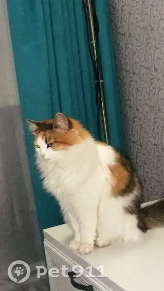 Трёхцветная пушистая кошка, кличка Ксюша. Не...