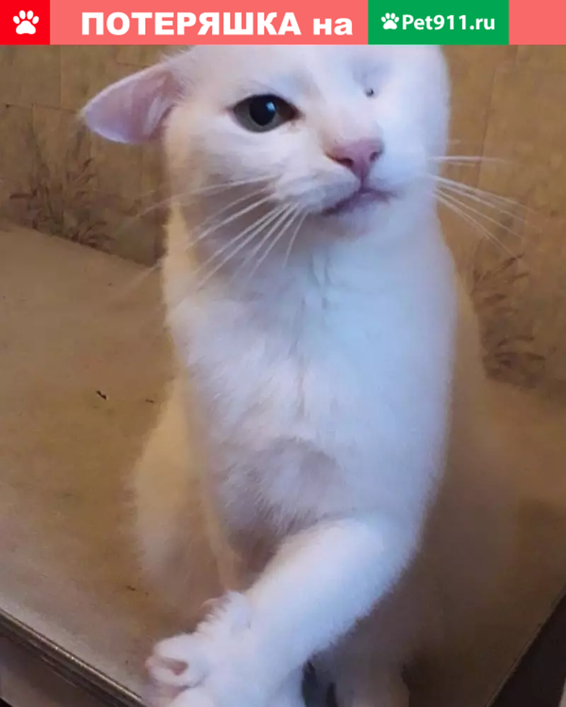 Окрас белый Особые приметы:" Нет 1 глазика.."...