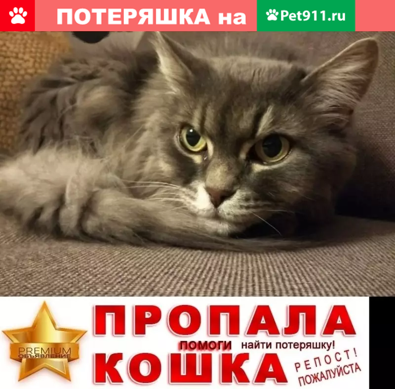 Пропала кошка на Пушкинской ул...