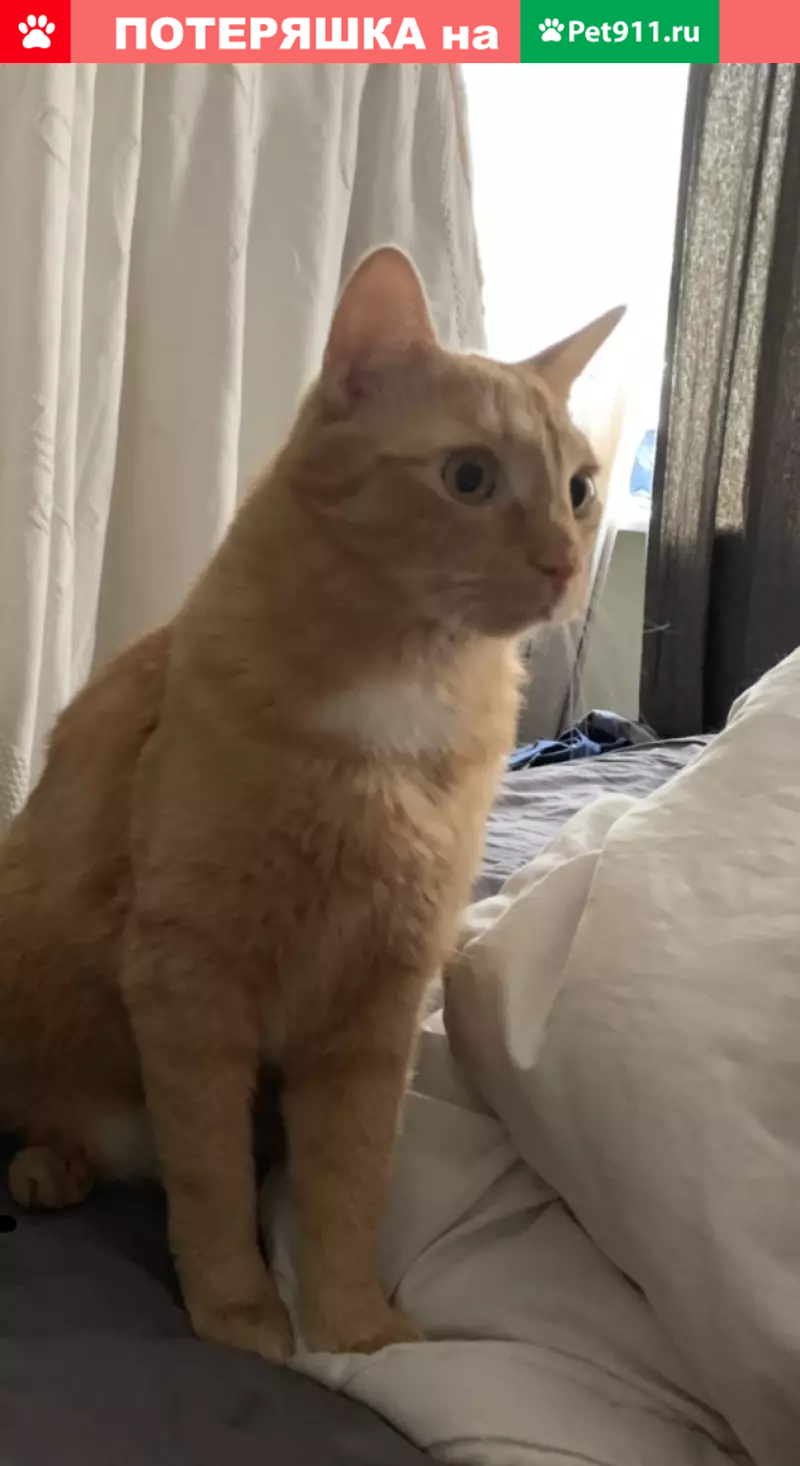 Пропал друг-кот, рыжий в легкую полоску, возр...