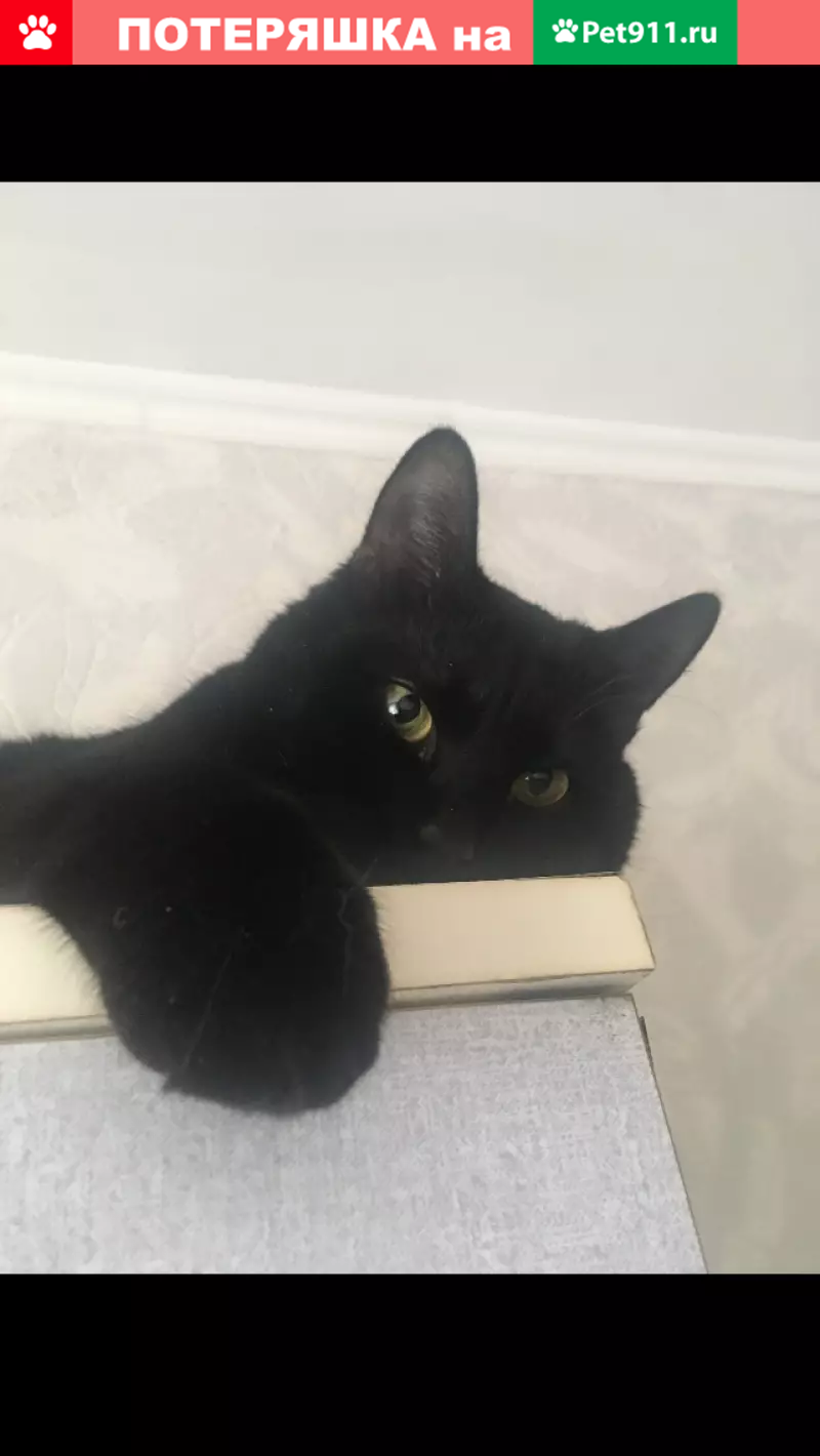 Пропал крупный черный кот с желтыми глазами в...