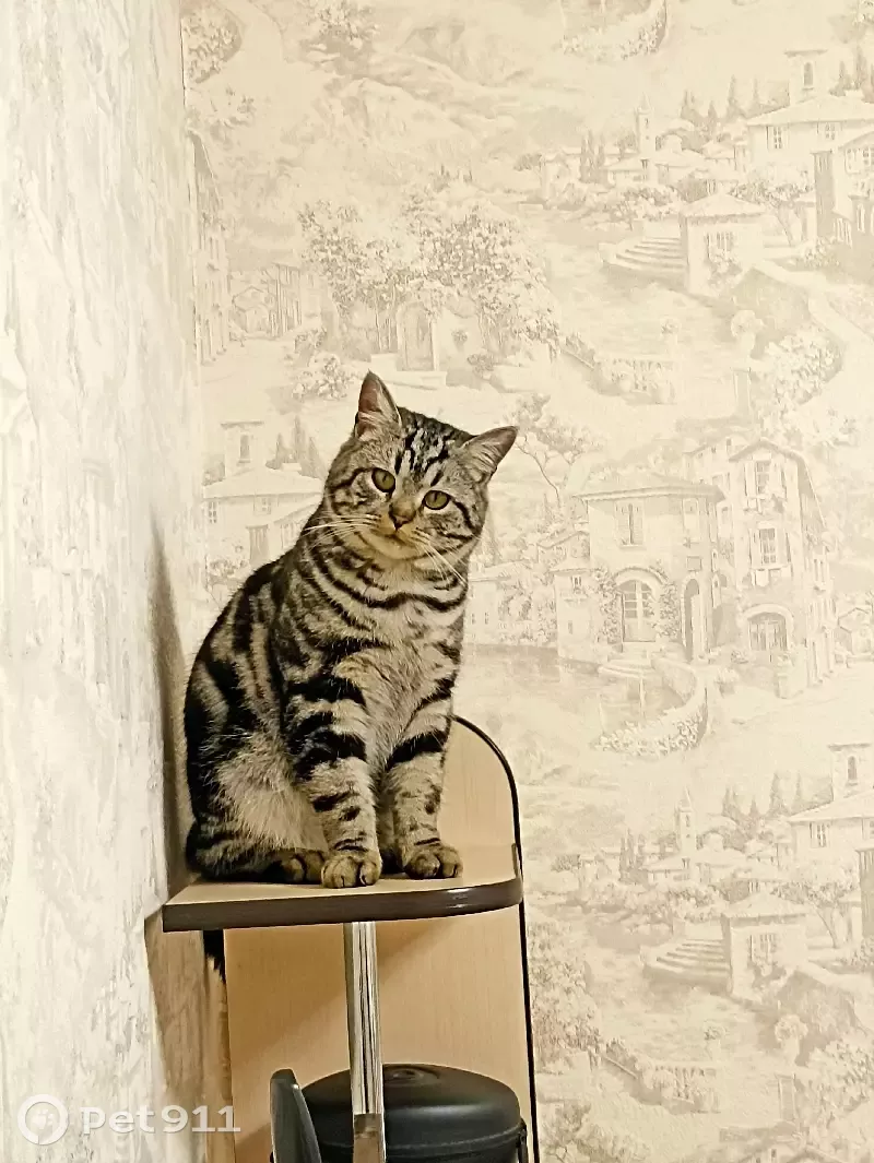Кот шотландской породы полосатый, по кличке П...