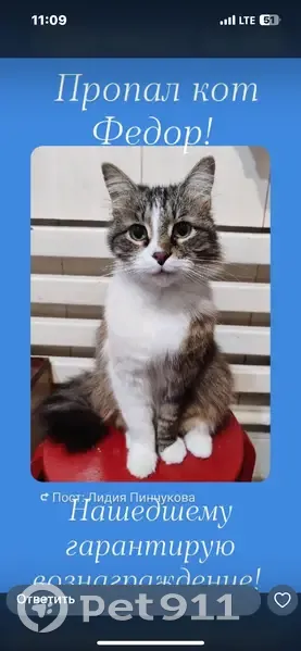 Пропала кошка, ул. Текучева 11...