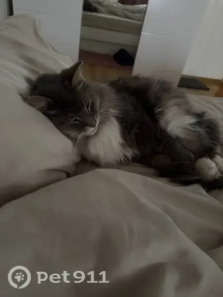 Кошки потеряшки, Москва, фото: Потеряшка кошка, улица Героев Панфиловцев (дублёр), 9 к1, Москва - дымчатая с белым пятнышком