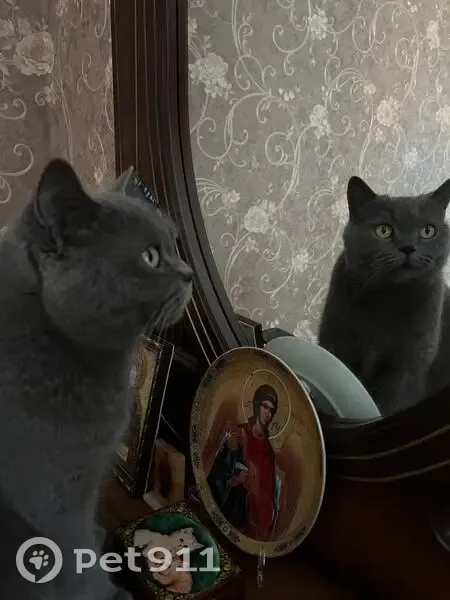 Коту 1,6 года, цвет серо-голубой, на гудке и...