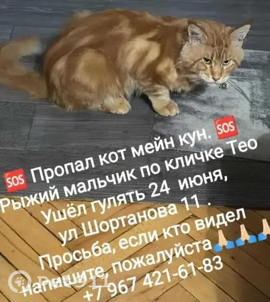 Пропал кот Тео, ул. Шортанова,...