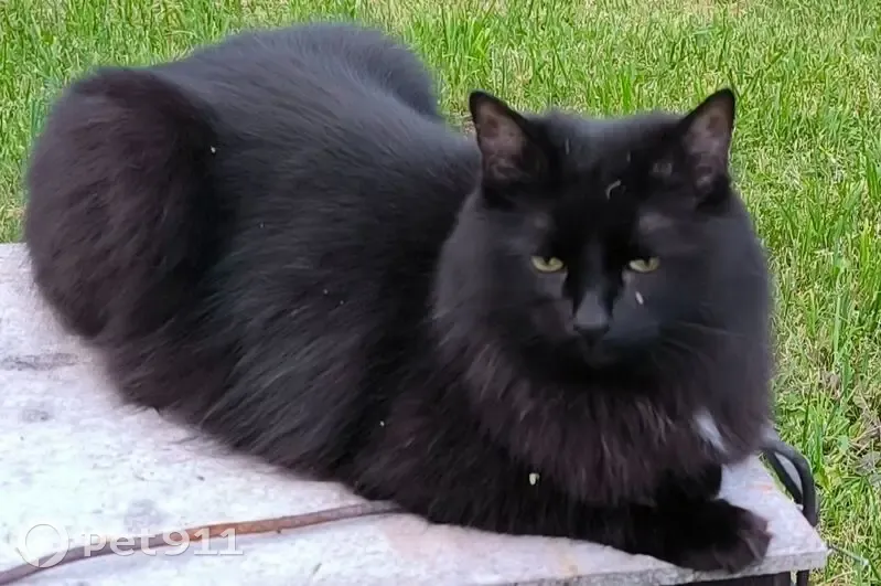 Кот, черный, пушистый,, чуть крупнее среднего...