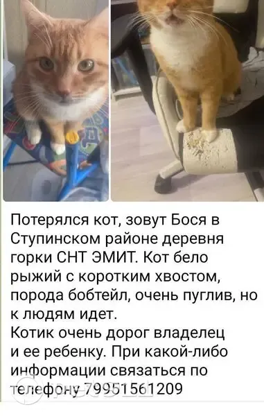 Кошки потеряшки, Московская область, фото: Потеряшка рыжий кот Арчик в Простоквашино
