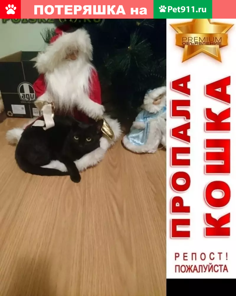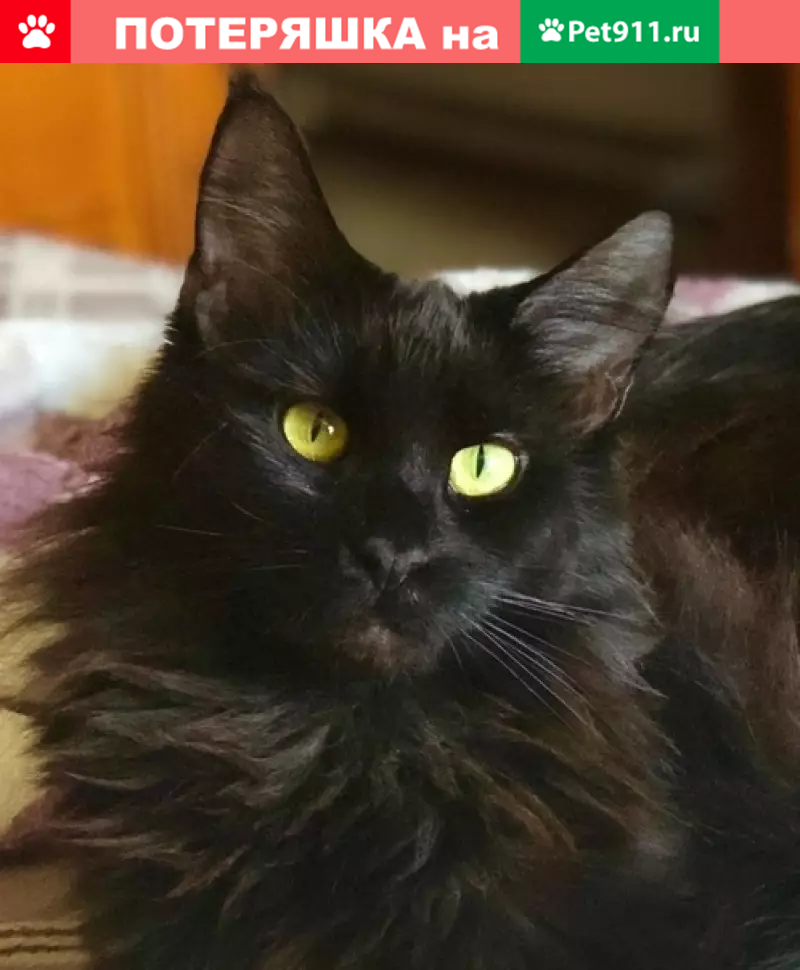 Пропала чёрная кошка, мейн кун с желтыми глаз...