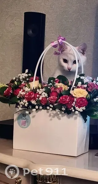 Кошки потеряшки, Москва, фото: Потеряшка кошка, улица Серёгина, 3, Москва - короткошёрстная белая с голубыми глазами