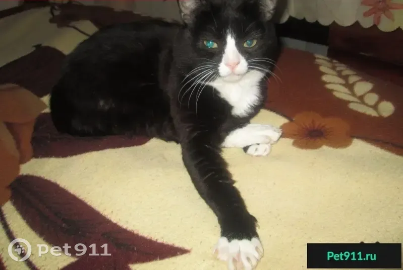 Потерялся кот. Черный, с белыми брюшком и лап...