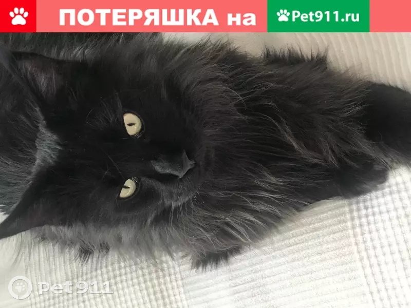 Черный мейн-кун 1,5 года. Ушел в районе дерев...