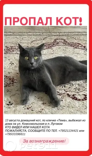 Потерялся кот. Убежал в лесополосу возле ЖК Б...