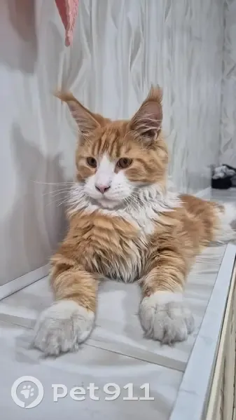 Кот , Майн Кун , рыжий с белым, играл в оград...