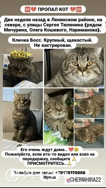 Пропавшие коты и кошки (потеряшки) в Городское Округе Ульяновске