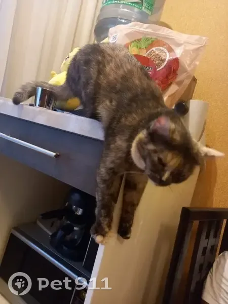 Потерялась трехцветная кошка с жёлтыми глазам...