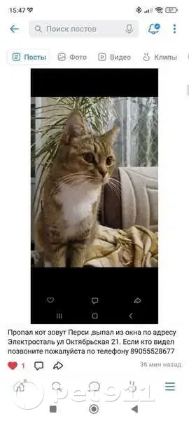 Пропал кот выбежал первый раз на улицу . Посл...