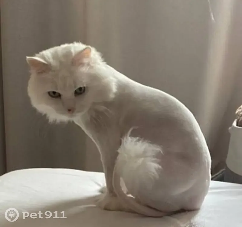 Белый кот, на носу пятнышко. Зовут Мистер, пр...