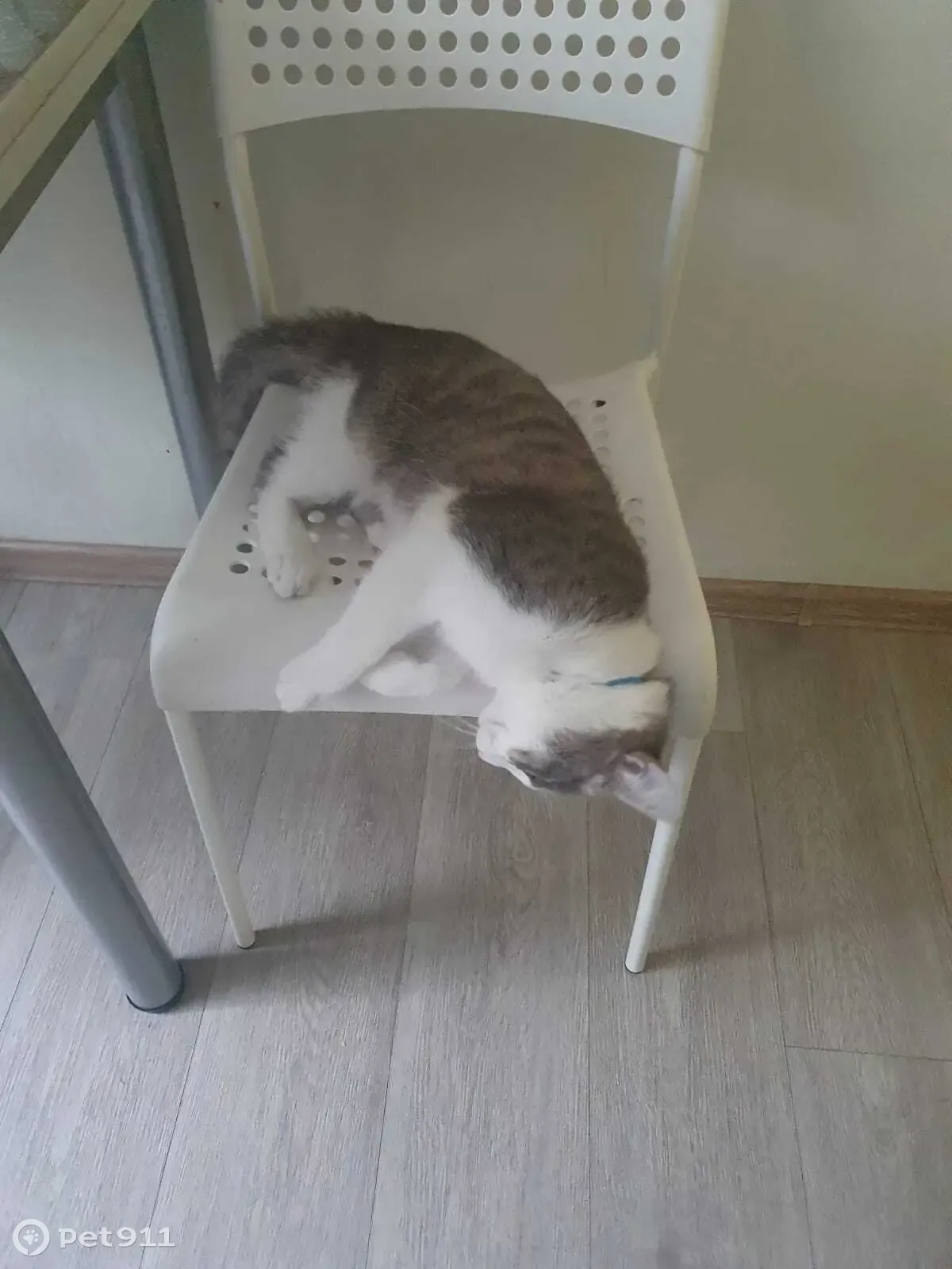 Потерялся кот серо белый окрас, на шее синий...