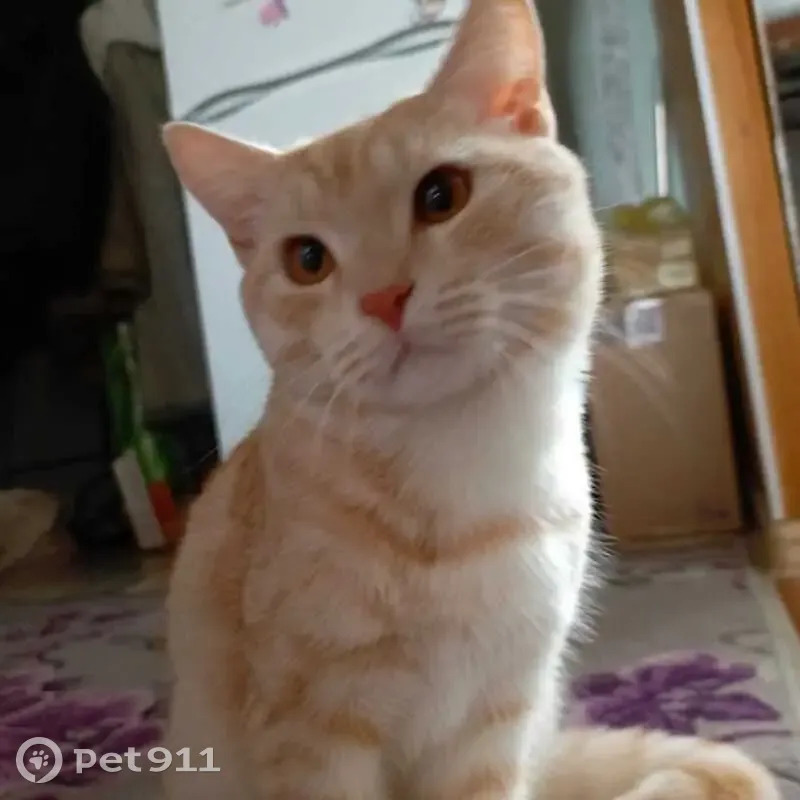 Кот, окраса рыже-белого, желтые глаза, пуглив...