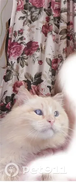 Кот белый, с чуть рыжим оттенком, хвостик чут...