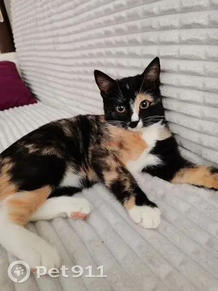 Небольшого размера, трехцветная. Выпрыгнула в...