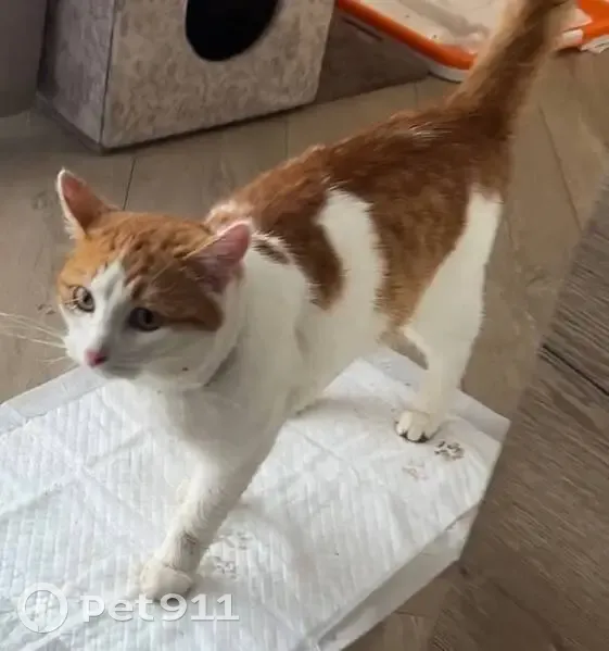 Рыже-белый кот,очень длинный хвост,был в ошей...