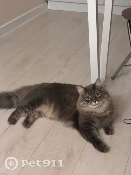 очень пушистая кошечка, окрас серо-белый, ушл...