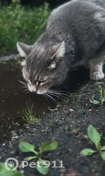 Кошки потеряшки, Красносельское, фото: Потеряшка котик в СНТ Редан, серый окрас, ошейник с номером телефона.