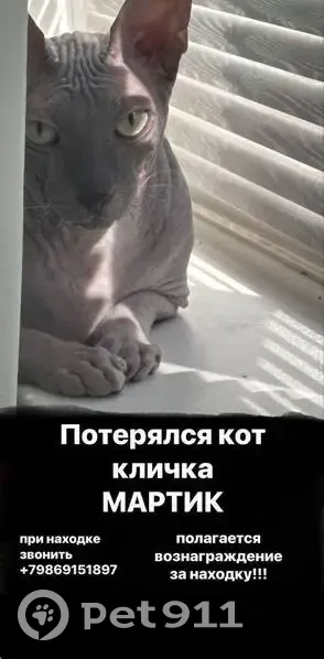 Пропал кот Мартин! Вознаграждение 10 Тысяч!!!...