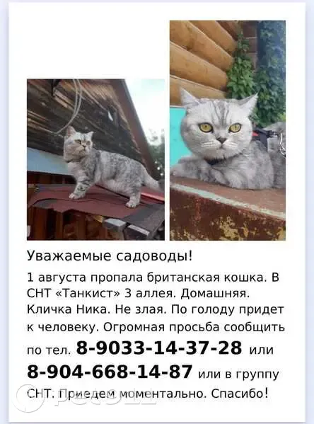 Пропала кошка, Дубравная ул.,...