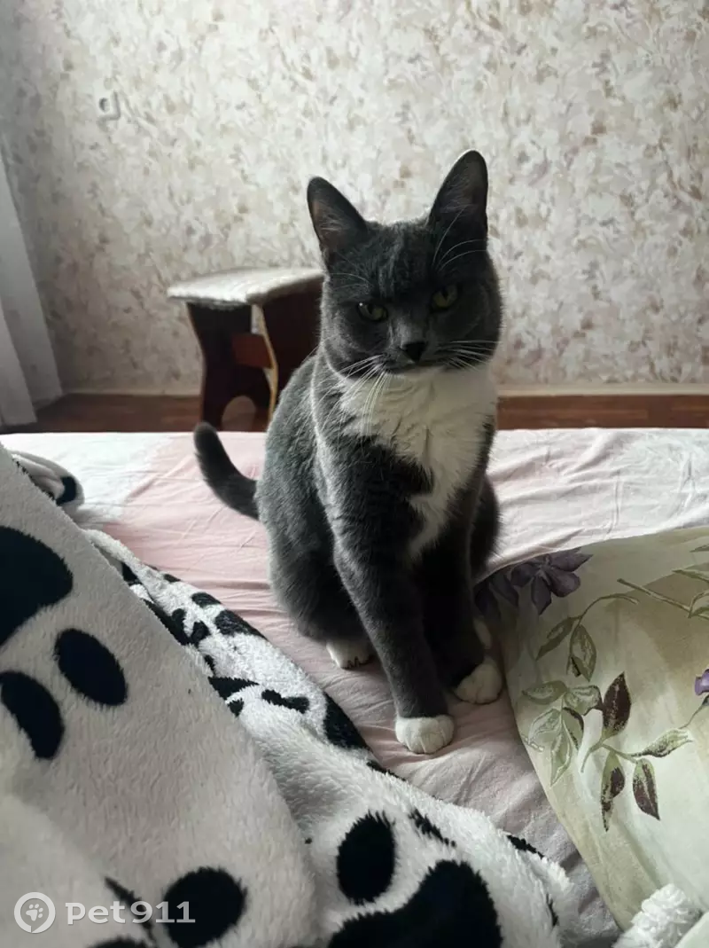 Пропал годовалый кот. Серо-белового окраса, ч...