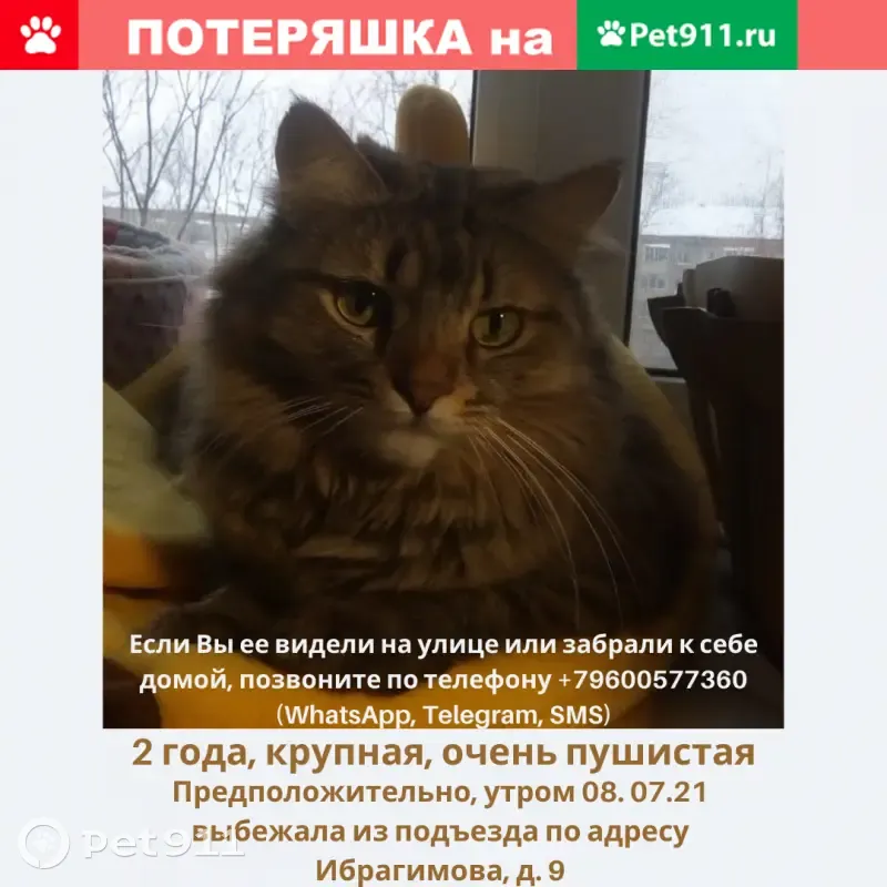 07 июля сбежала кошечка с переноски. Прямо п...