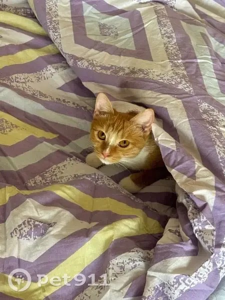 Рыжий, но на животе и на шее шерсть белая. Уш...
