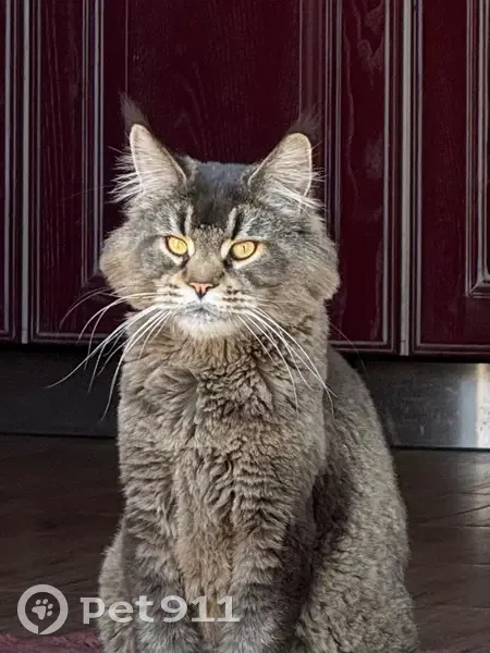 Порода Мейн Кун, окрас черно серый. Убежал из...