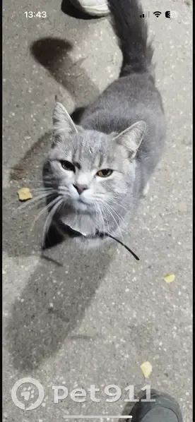 Серый, пушистый, похож на мейкуна, Был ошейни...