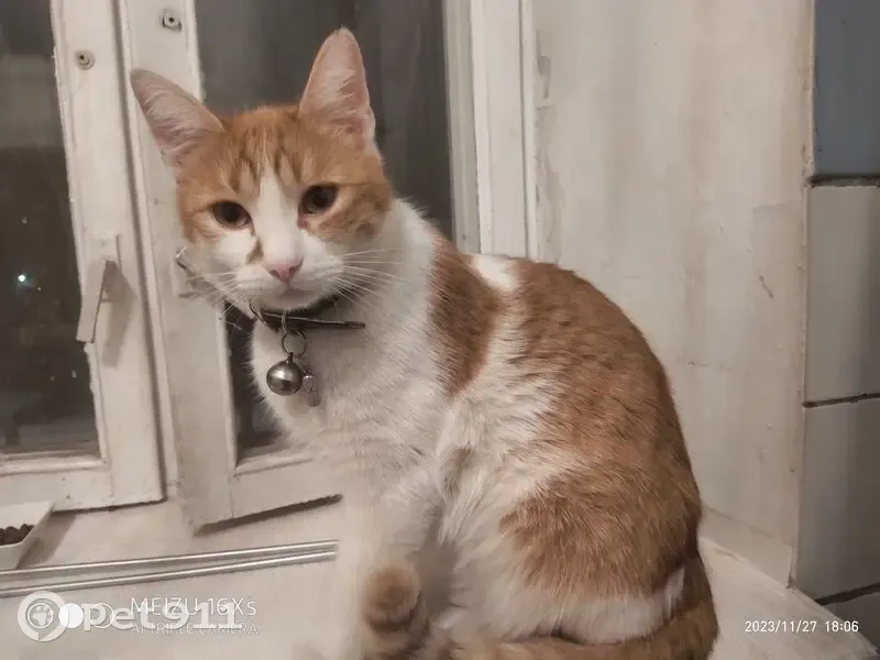 Кошки потеряшки, Балашиха, фото: Потеряшка кот, улица Свободы, 6, Балашиха - рыжий с белым окрасом и большим бубенчиком