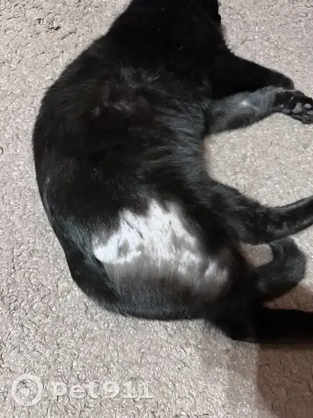 Вся черная, есть пару белых волосков на спине...