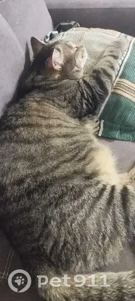 Взрослый серый полосатый кот примерно 6-7 лет...