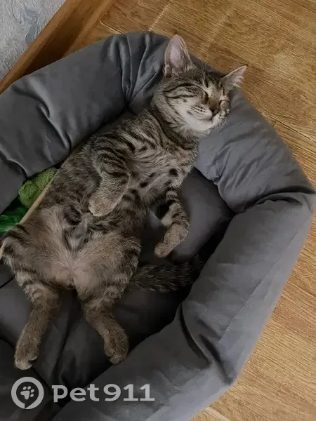 Кот 5 месяцев серый на пузе белая бабочка вып...