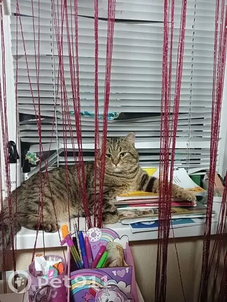 Обычный, серый с коричневым. Очень ласковый,...