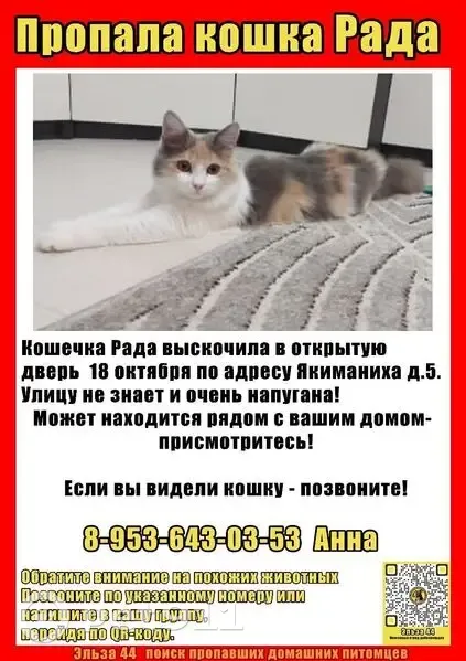Пропала кошка, Речной проспект...