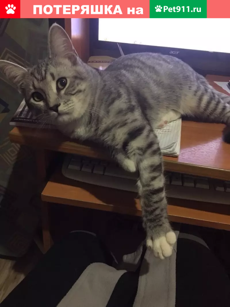 Пропал кот серый пушистый зовут пушок в район...