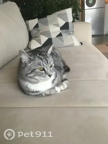 Домашний ухоженный кот, без ошейника. Пугливы...